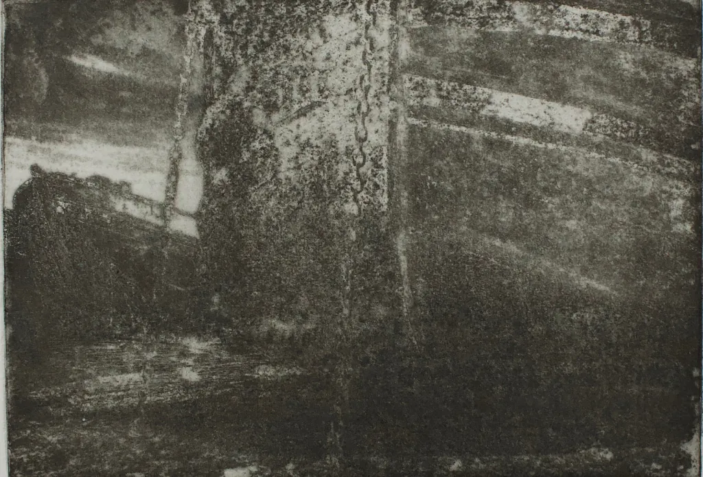 I went to the Thames at low tide and from the bank of the river I captured images of structures and textures from times passed, and transformed them into photo etchings in the workshop.